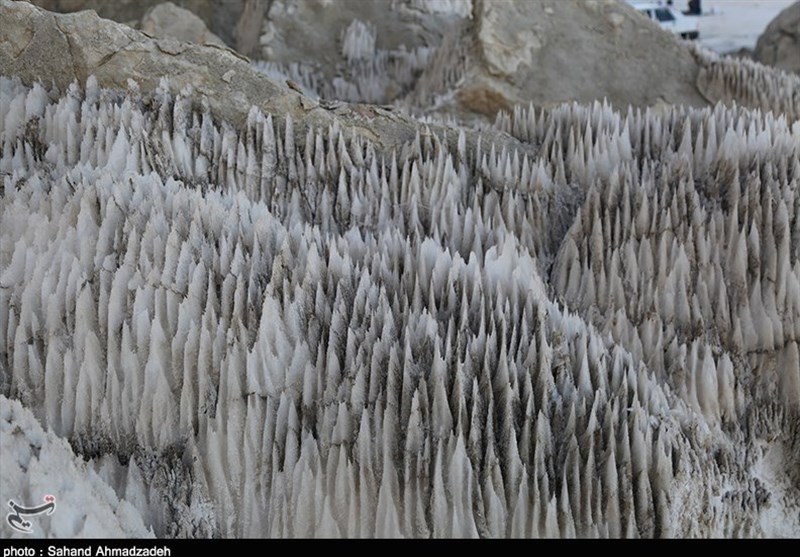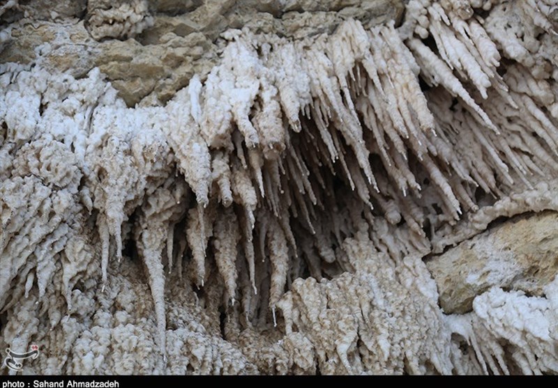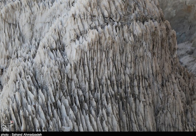 تکه سنگهایی که نمکها به صورت تیغ روی آنها قرار دارد از طرفی و قندیلهای نمکی بلورین و زیبا از طرف دیگر تصویری حیرت انگیز در