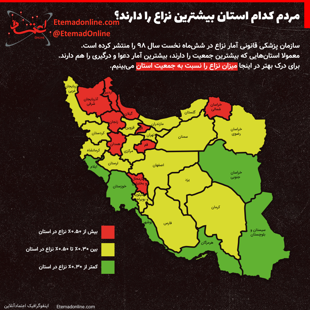 مردم کدام استان بیشترین نزاع را دارند؟ / اینفوگرافی