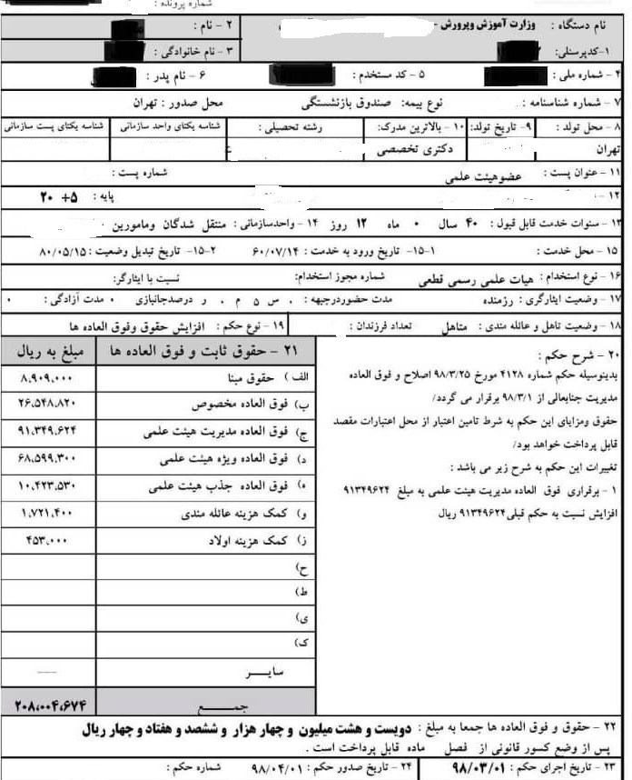 ماجرای فیش حقوقی 20 میلیونی و بورسیه معاون وزیر آموزش و پرورش