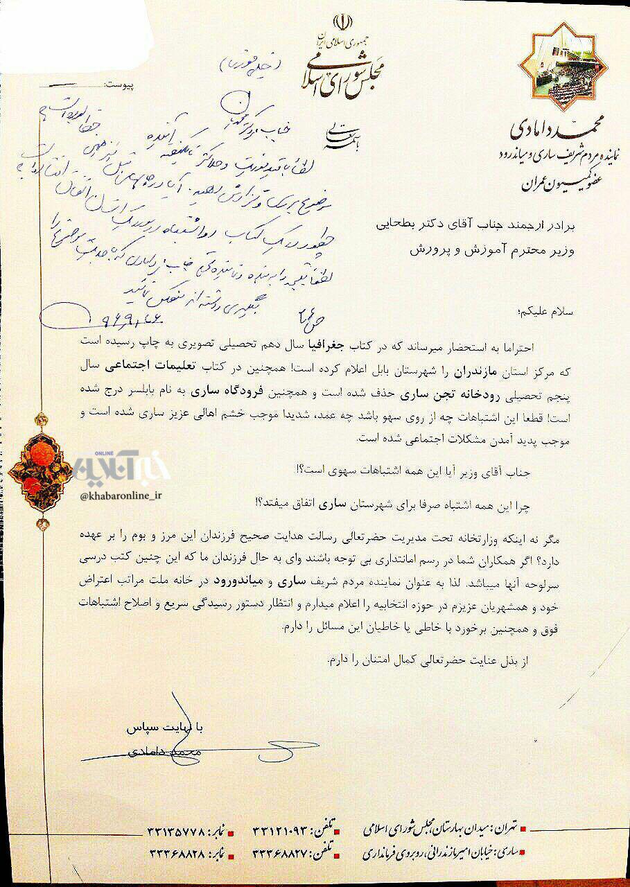 در روزهای گذشته، اشتباهات در کتاب‌های درسی با واکنش های مختلفی مواجه شده است. یکی از این واکنش‌ها، از سوی نماینده ساری است و درنامه‌ای به وزیر آموزش و پرورش خواسته موضوع یک رود و فرودگاه ساری، اصلاح شود.