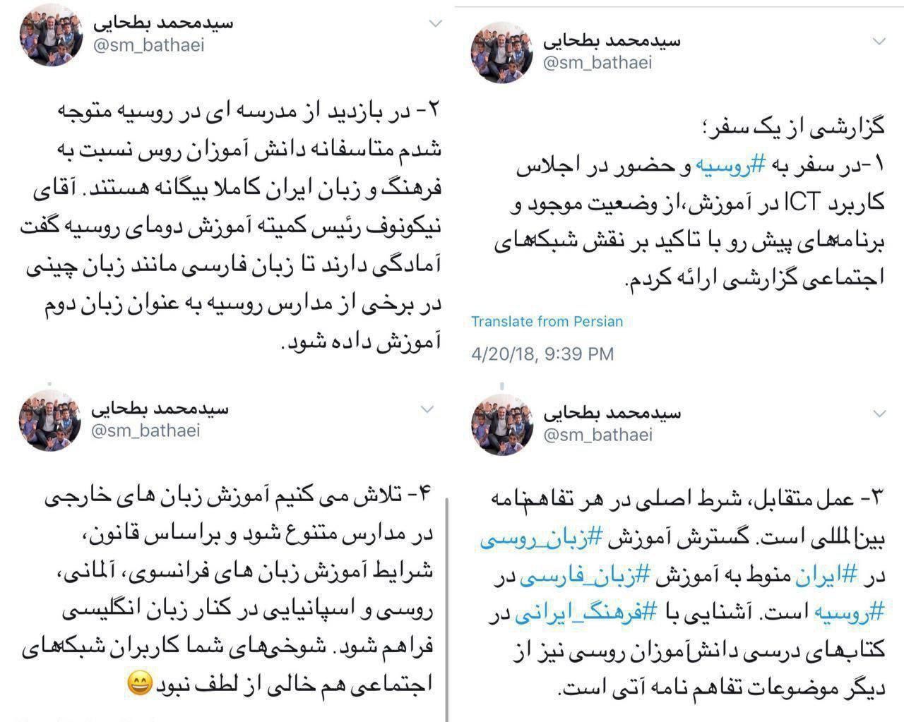 وزیر آموزش و پرورش درباره پیشنهاد به روسیه درباره تدریس زبان روسی در مدارس ایرانی و زبان فارسی در مدارس روسیه توضیحات توییتری ارائه کرد.
