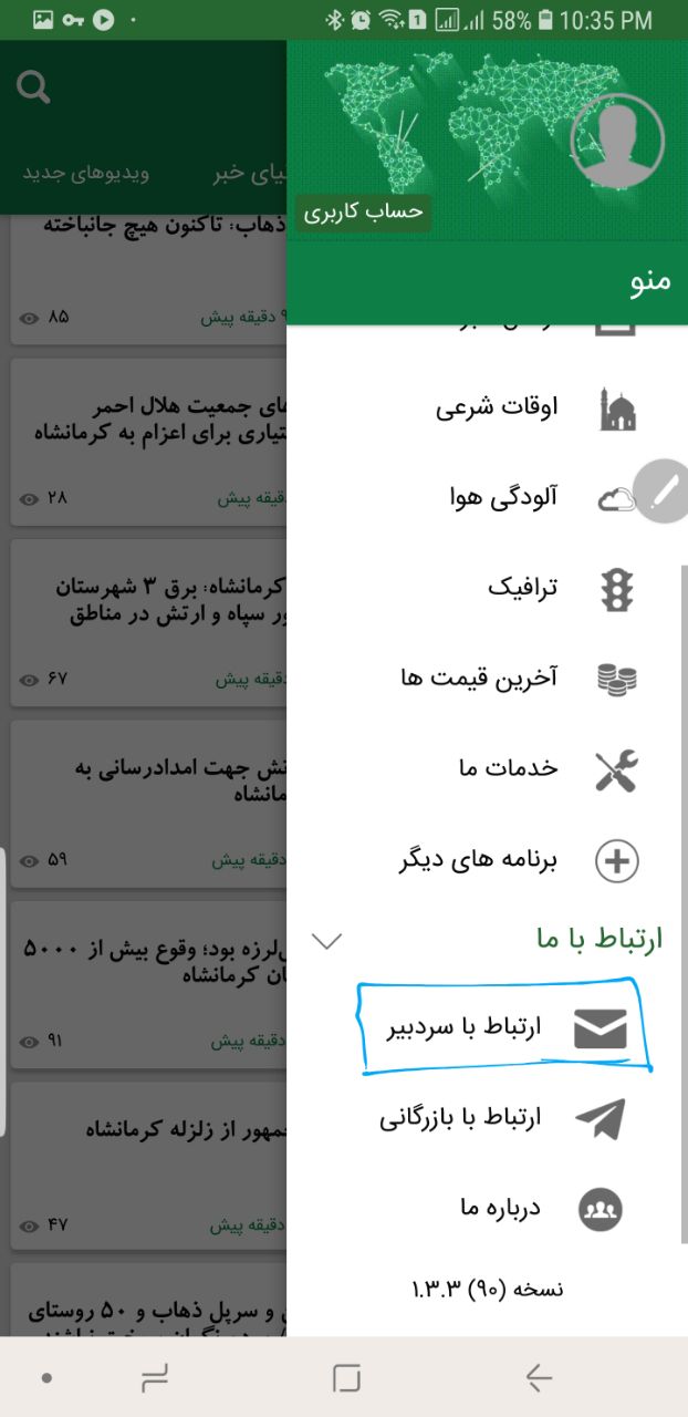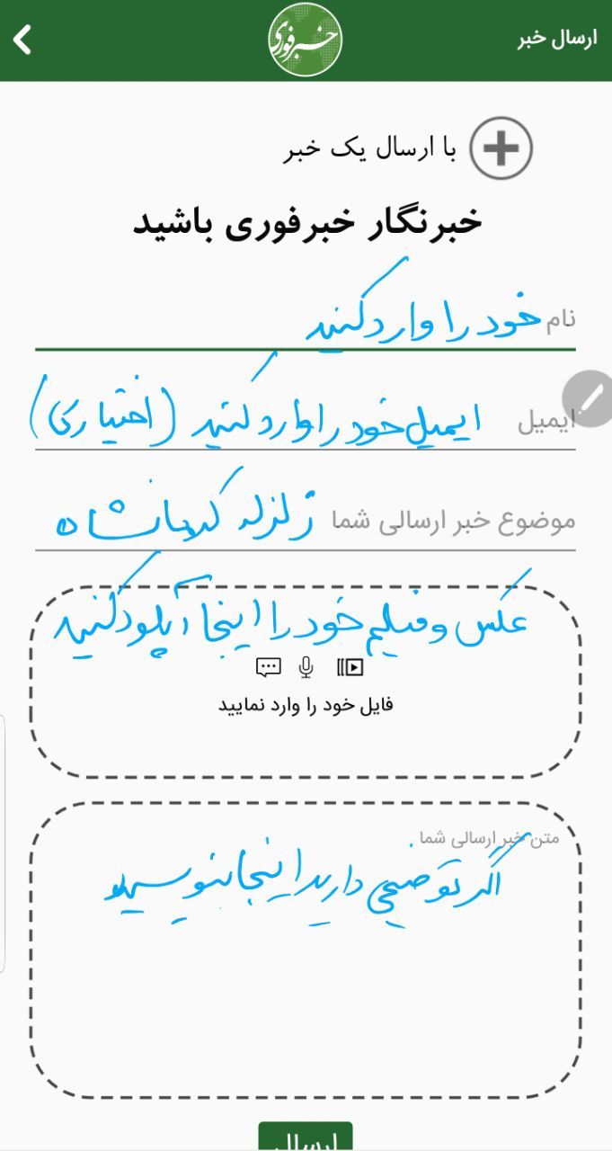 همچنین شما می توانید از طریق ارتباط با سردبیر مستقیما تصاویر و فیلم های خود را برای سردبیر اپلیکیشن خبر فوری ارسال کنید.