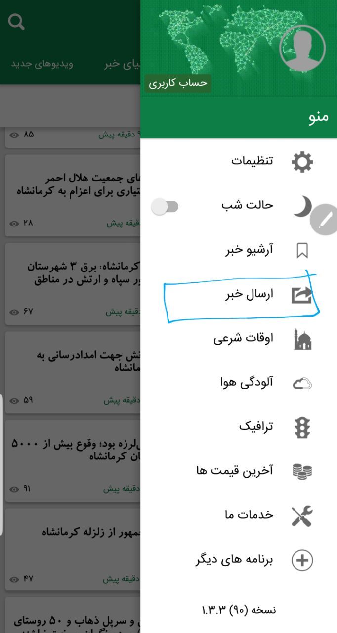 برای این کار شما می توانید با وارد شدن به اپلیکیشن خبر فوری از منوی سمت راست و از طریق گزینه ارسال خبر، عکس ها و فیلم های خود را برای ما ارسال کنید.