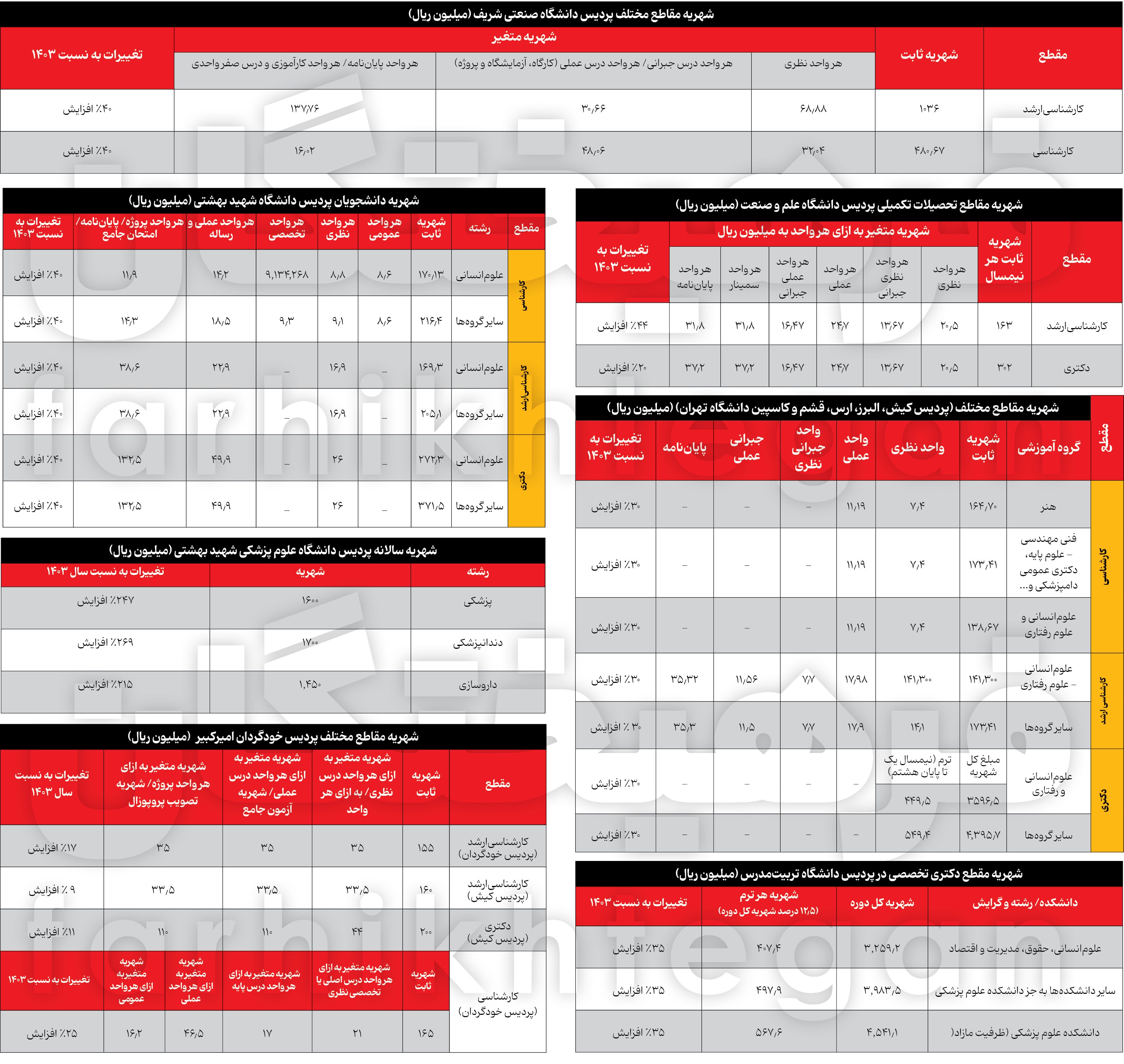 اعداد عجیب از شهریه‌های پردیس بعضی دانشگاه‌های مهم