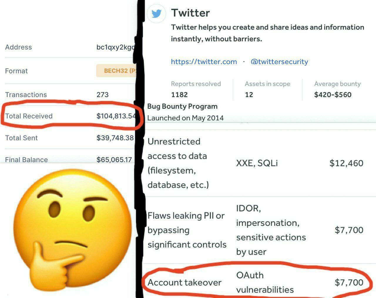 عکس زیر نشان می دهد که پولی که دیشب هکرها از هک حسابهای مهم توییتری به دست آورده اند تا این ساعت بیشتر از ۱۴ برابر مقداری است که که خود توییتر در برنامه جایزه کشف باگ اهدا می کرده است!
