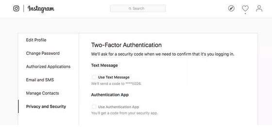 به صحفه پروفایل رفته و روی آیکون چرخدنده کلیک کنید. سپس به مسیر Privacy and Security > Edit Two-Factor Authentication Setting بروید. تیک کنار گزینه Text Message را بزنید. اگر دارای یک نرم افزار احراز هویت باشید، گزینه Use Authentication App نیز قابل انتخاب خواهد بود، در غیر این صورت گزینه یاد شده خاکستری بوده و امکان انتخابش وجود ندارد.