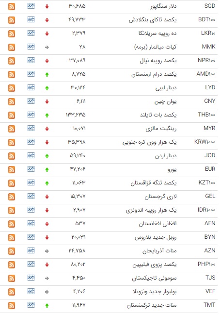 ارزش ۴۷ ارز از سوی بانک مرکزی درحالی اعلام شد که نرخ ۱۴ ارز از جمله یورو روند صعودی، ارزش ۲۲ ارز روند نزولی و ۱۱ ارز از جمله دلار آمریکا بدون تغییر قیمت کار خود را آغاز کردند.