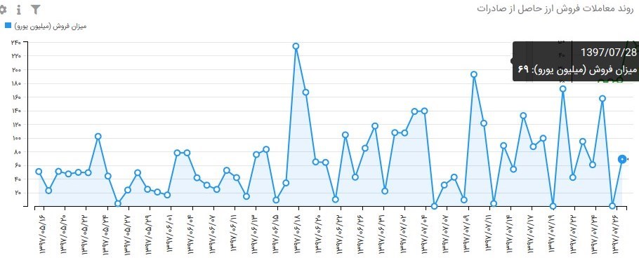 بر اساس گزارش عملکرد بازار ثانویه سامانه نیما، روز گذشته حدود 69 میلیون یورو انواع ارز حاصل از صادراتی در این بازار تزریق شده است.