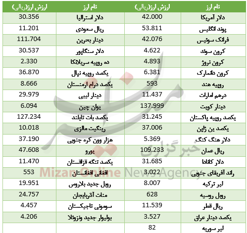 ارزش ۳۹ ارز بین بانکی در حالی از سوی بانک مرکزی اعلام شد که ارز ۱۹ ارز از جمله پوند روند صعودی، ارزش ۱۷ ارز از جمله یورو روند نزولی و ۳ ارز از جمله دلار آمریکا بدون تغییر قیمت کار خود را آغاز کردند.