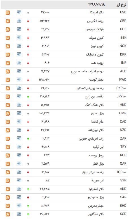 نرخ ۴۷ ارز بین بانکی در ۱۸ اردیبهشت ۹۸ / قیمت ۲۴ اسعار دولتی کاهش یافت + جدول