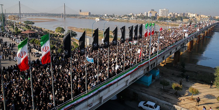 از نخستین ساعات صبح امروز مردم خوزستان خود را از نقاط مختلف استان به اهواز رساندند تا در مراسم تشییع شهید سلیمانی مشارکت کنند.