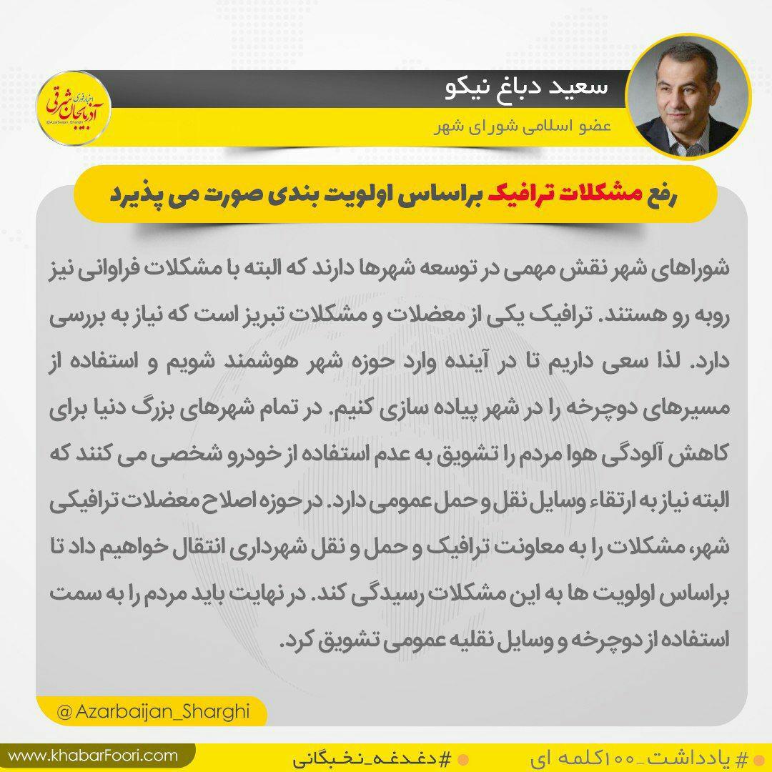 سعید دباغ نیکو عضو اسلامی شورای شهر تبریز در دیدگاه نخبگانی و یادداشت اختصاصی برای اخبار آذربایجان شرقی نوشت: