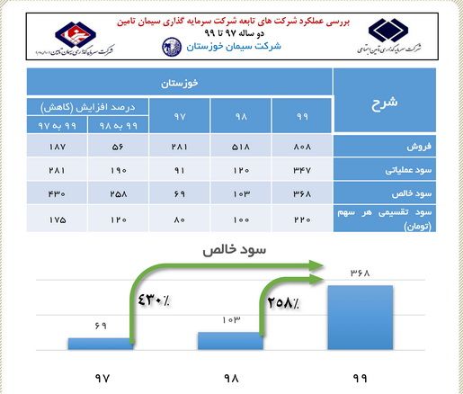 در شرایطی که سال های اخیر را سخت ترین سال های اقتصادی می دانند، سیمان خوزستان از جمله شرکت های تابعه شستا در شاخص سود خالص موفق رشد ۴٣٠ درصدی شد و توانست در سال ٩٩ رکورد تولید از بدو تأسیس را بشکند.