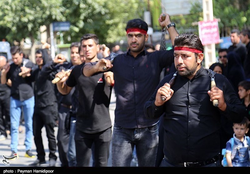مردم مرکز استان خراسانشمالی با حضور در دستههای عزاداری همزمان روز تاسوعای حسینی، به سینهزنی و زنجیرزنی پرداختند.