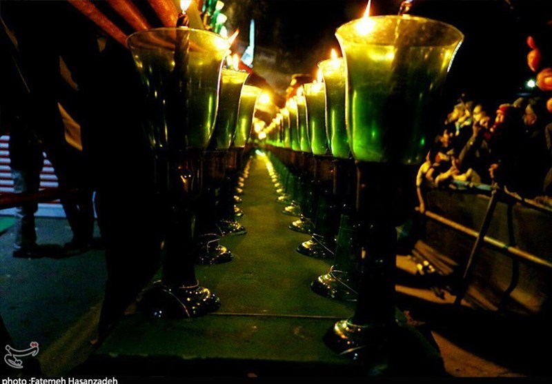 مراسم شام عزای امام رضا (ع) همراه با آیین شمع‌گردانی با شمعدانی‌های حرم امام رضا (ع) برگزار شد.