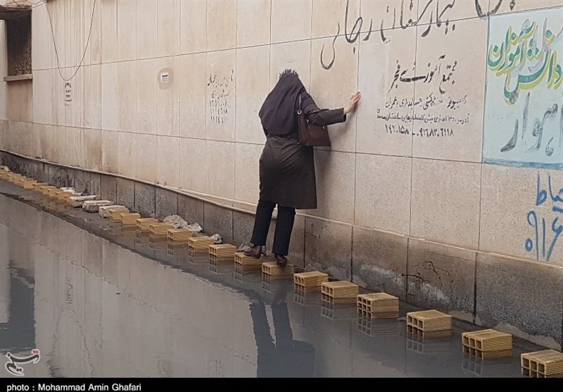 مسعودی گفت: چندین بار پیش آمده که دختران برای آمدن به داخل خوابگاه مجبور شدند ساعاتی را در ابتدای کوچه بایستند تا ماشین آشنایی بیاید و آنها را از میان فاضلاب عبور دهد.