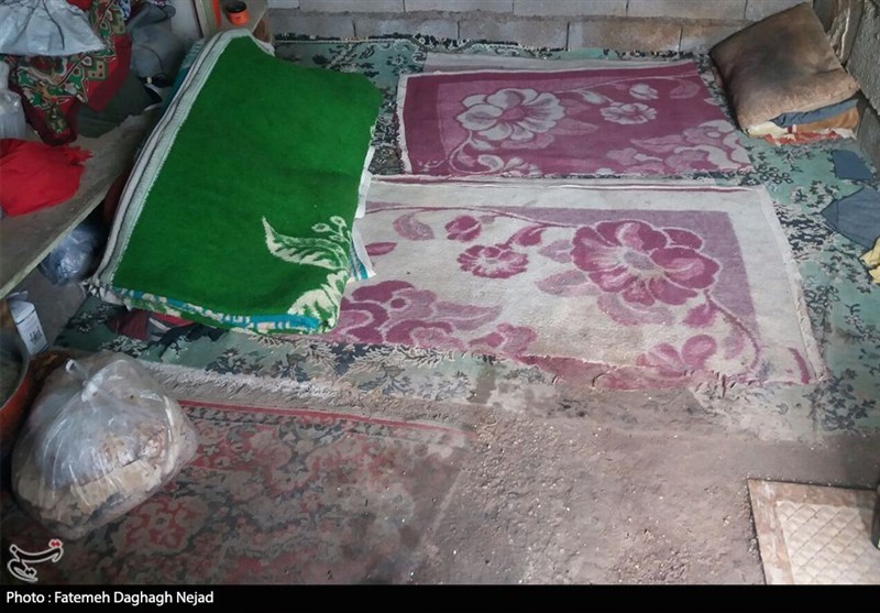 این مادر در حین گفتن این کلمات فرش رنگ پریده را که کاملا پاره بود بلند میکند و میگوید: در سوز سرما این فرش تنها زیر پای ما است. سالهاست که مریض هستم ولی به علت فقر و نداری نمیتوانم درمان کنم. در این سوز سرما وسیله گرمایشی ندارم که بخواهم روشن کنم تا گرممان بشود توان خرید را هم ندارم که حداقل بتوانم لباس گرم برای خودم و ابراهیم بخرم.