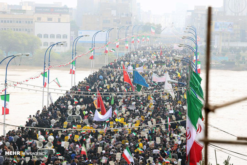 مردم شهرهای مختلف استان خوزستان در سوز سرمای امروز این استان با حرارت خاصی در راهپیمایی ۲۲ بهمن شرکت کردند و این استان ولایی به رنگ انقلاب اسلامی درآمد.