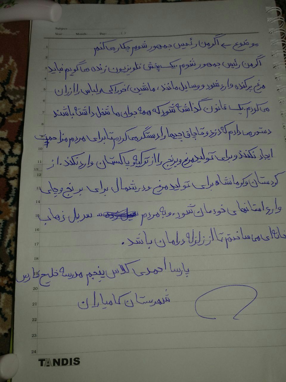 نامه دانش آموز کلاس پنجمی به رئیس جمهور/عکس