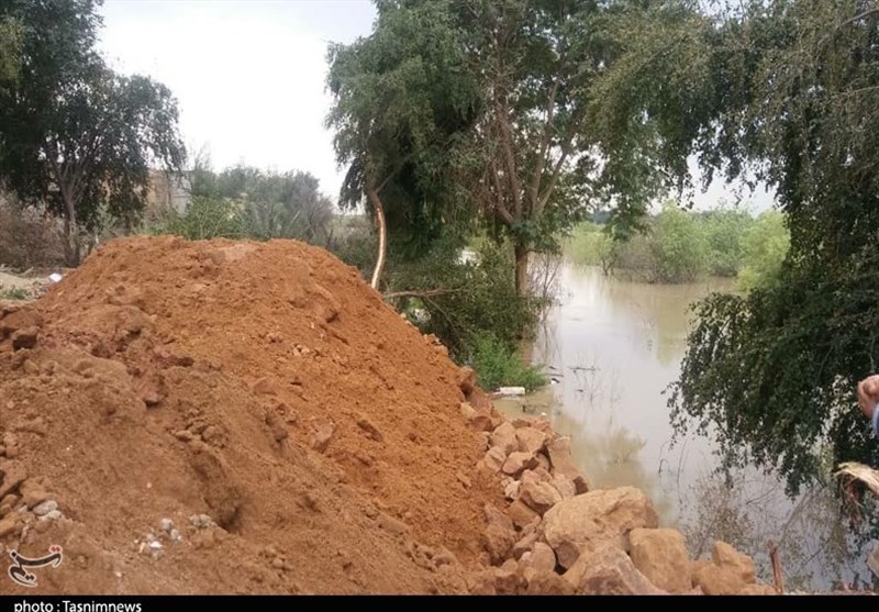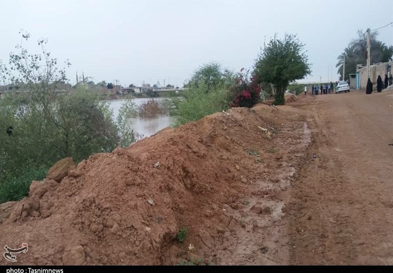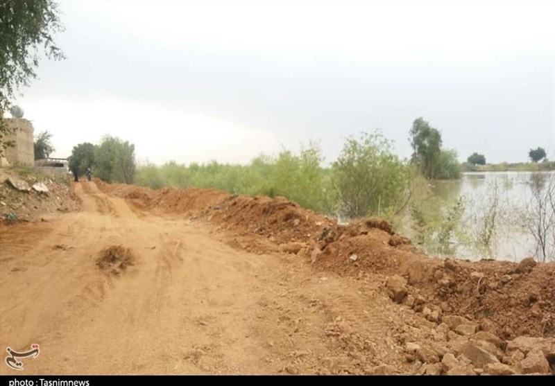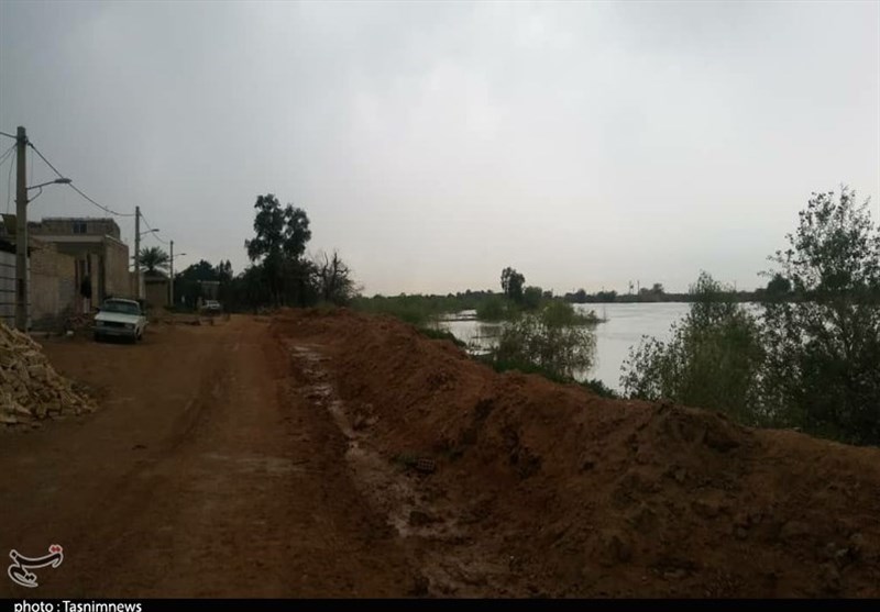 مسئولان با ساخت سیل‌بندهای خاکی مانع از نفوذ آب به درون منازل ساکنان روستاهای حمیدیه می‌شوند.
