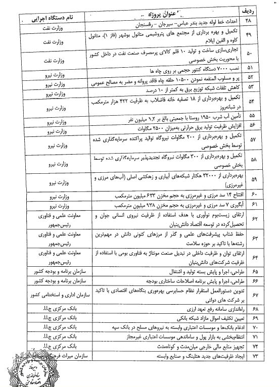 لیست ۷۶ پروژه اولویت دار دستگاه های مختلف «مصوب ستاد فرماندهی اقتصاد مقاومتی» که در پیوست این تصویب نامه ستاد آمده، به شرح زیر است: