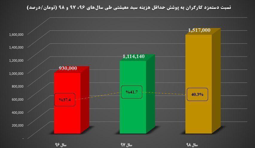برخی تحلیل‌های اقتصادی بر این است که طبق گزارش بانک مرکزی در سال ۹۶ دستمزد کارگران ۳۷ درصد از حداقل هزینه‌های سبد معیشتی آنها را پوشش می‌داد که این فاصله در سال ۹۷ به ۴۱ درصد رسید و در سال جاری بار دیگر بیشتر شد و روی عدد ۴۰ درصد قرار گرفت.