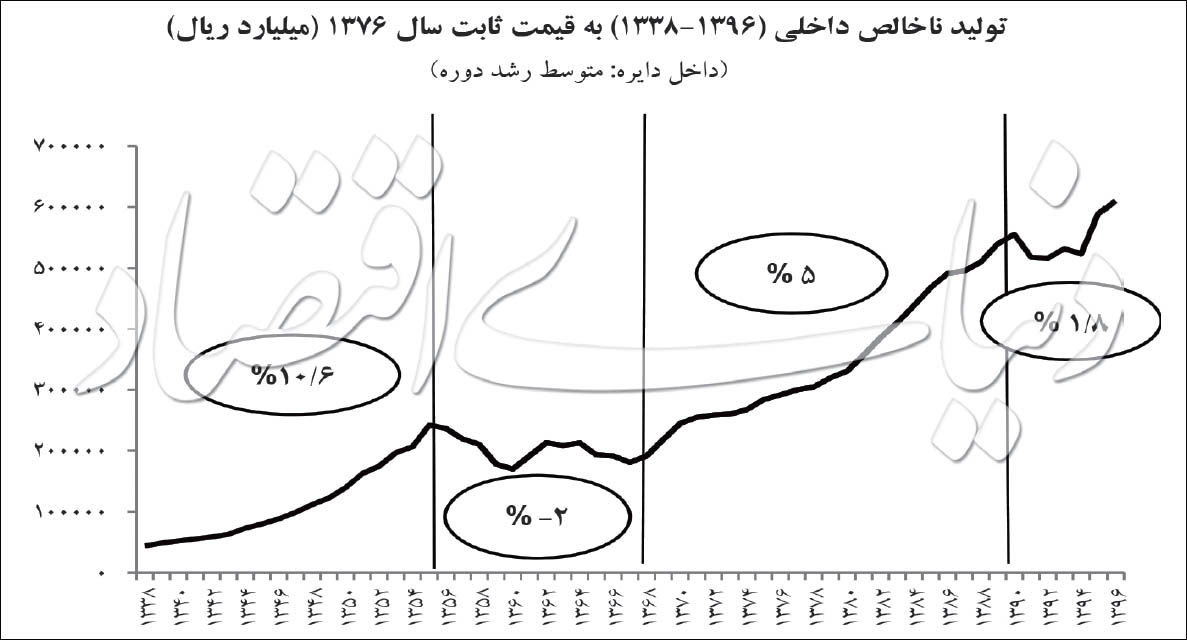 براساس حافظه تاریخی اقتصاد ایران، میانگین رشد اقتصادی سالانه ایران در دوره ۱۳۳۸ تا ۱۳۵۵، معادل ۶/ ۱۰ درصد بوده است. در دوره سال‌های انقلاب و جنگ تحمیلی(۱۳۵۷ تا ۱۳۶۸) میانگین رشد اقتصادی معادل منفی ۴/ ۲ درصد ثبت شده بود. پس از جنگ و تا ابتدای دهه ۹۰، میانگین رشد اقتصادی سالانه به ۵ درصد رسید. بررسی تحولات رشد اقتصادی ایران در دوره رونق نفتی دهه ۸۰، حاکی از این است که با وجود افزایش درآمدهای نفتی نه‌تنها رشد اقتصادی بالا و مستمر حاصل نشد، بلکه اقتصاد ایران در این دوره، رشد پایین همراه با کاهش بهره‌وری را تجربه کرد. با تشدید تحریم‌های نفتی، مالی و تجاری در نیمه اول دهه ۹۰ به منفی ۸/ ۱ درصد در سال کاهش یافت. در سال ۹۵ و ۹۶، با بازگشت تحریم‌ها و پرشدن ظرفیت‌های خالی نفتی، رشد اقتصادی احیا شد و اقتصاد ایران دو رشد ۵/ ۱۲ درصد و ۷/ ۳ درصد را ثبت کرد. هر چند اثر این رشد با بازگشت تحریم‌ها، عملا از بین رفت و رشد اقتصادی در سال‌های ۹۷ و ۹۸، منفی شد. تولید ناخالص داخلی سرانه سال ۱۳۹۶، حدودا مشابه سال ۱۳۹۰ بوده است. در نتیجه در دو سال اخیر، درآمد سرانه ایرانیان با افت همراه شده و حتی از رقم ابتدای دهه نیز کمتر شده است. پژوهش‌ها مهم‌ترین ویژگی اقتصاد ایران در سال‌های اخیر را کاهش رشد بهره‌وری می‌دانند که این کاهش، با گسترش تحریم‌های اقتصادی و فضای نااطمینانی تشدید نیز می‌شود. در شرایط افت شدید رشد بهره‌وری، حتی تزریق منابع نفتی بیشتر، چندان به بازدهی بخش تولید غیرنفتی منجر نمی‌شود. چرا‌که طبق تحقیقات، در این شرایط منابع سرمایه‌ای چندان در فرآیندهای تولیدی مولد و اشتغال‌زا به‌کار گرفته نشده، بلکه یا به‌صورت مصرف مستقیم آن در چارچوب سیاست‌های توزیعی و برنامه‌های اجتماعی از بین می‌رود یا در بازارهای مالی از هم گسیخته با بخش واقعی اقتصاد، دستخوش سوداگری‌های بی‌حاصل می‌شود. از این‌رو در شرایطی که نرخ رشد بهره‌وری بلندمدت با صفر فاصله معناداری ندارد، انتظار بر این است که نرخ رشد تولید در بلندمدت توسط نرخ رشد موجودی سرمایه و اشتغال بالا تامین شود. از طرفی، با توجه به اینکه بازار کار نیز با مازاد عرضه روبه‌رو است، پس سرمایه تعیین‌کننده‌ترین نقش را خواهد داشت. این درحالی است که تجهیز سرمایه مورد نیازی که بتواند کاهش بهره‌وری را جبران کند، نه امکانپذیر است و نه منطقی. پس تحصیل نرخ‌های رشد بالا در اقتصاد ایران با ادامه روند سیاست‌های گذشته و در محیط بی‌ثبات و نااطمینان اقتصاد کلان موجود، با مشکل مواجه است.