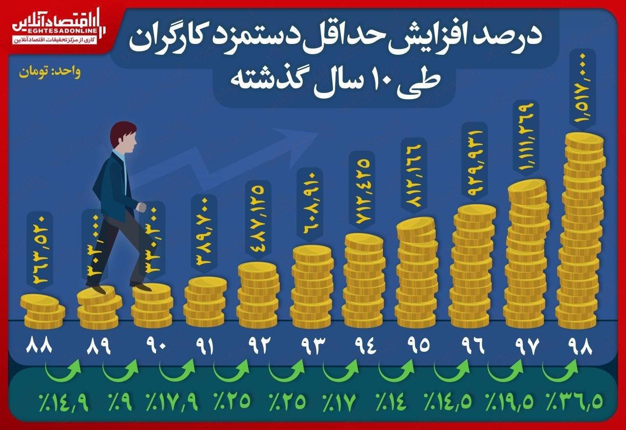 «حداقل دستمزد کارگران» طی ۱۰سال اخیر