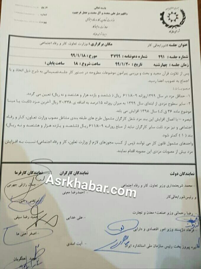 اعلام حداقل دستمزد کارگران، بدون توافق با نمایندگان کارگری! / چرا نماینگان کارگری صورتجلسه را امضا نکردند؟ / احتمال ابطال مصوبه دستمزد ۹۹