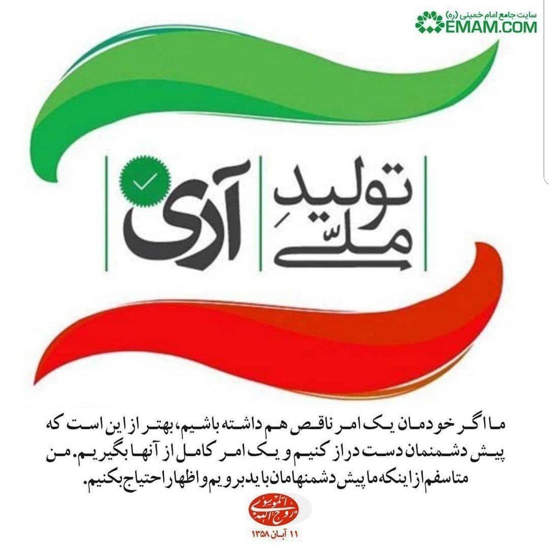 رهبر معظم انقلاب اسلامی حضرت آیت‌ الله خامنه‌ای در پیام نوروزی خود به مناسبت آغاز سال 1397 بر ضرورت حمایت از کالای ایرانی تاکید کردند و شعار سال را "حمایت از کالای ایرانی" نام نهادند, البته بحث حمایت از تولید ملی و اجتناب از وابستگی اقتصادی به خارج بحثی نیست که در سالهای اخیر مطرح شده باشد, معمار کبیر انقلاب حضرت امام خمینی (ره) نیز به بحث تولید داخلی عنایت داشتند و بارها در سخنان خود بر ضرورت حمایت از کار و سرمایه ایرانی تاکید کردند؛ در ادامه بخش هایی از سخنان حضرت امام (ره) دراین باره را می‌خوانید: