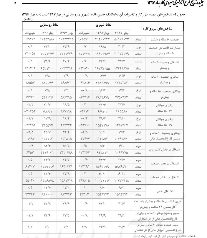این نرخ در بین زنان نسبت به مردان و در نقاط روستایی نسبت به نقاط شهری بیش تر بوده است. بررسی روند تغییرات این نرخ از کاهش 2.6درصدی در بهار 97 نسبت به فصل مشابه سال قبل است.