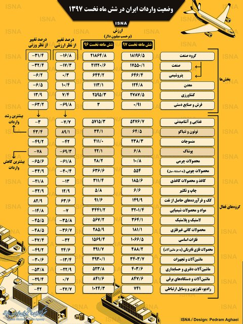 اینفوگرافی / وضعیت واردات ایران در شش ماه نخست ۱۳۹۷