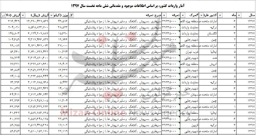 براساس آمار مقدماتی گمرک از تجارت خارجی ۶ ماهه ابتدایی سال جاری، در این مدت بیش از ۵۶۷ تن سربطری و سرپوش از کشورهای مختلف جهان وارد ایران شده است.