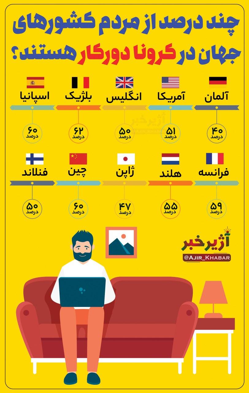 چند درصد از مردم کشورهای جهان در کرونا دورکار هستند؟/ اینفوگرافی