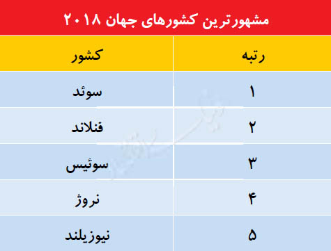 «بنیاد شهرت» در جدیدترین گزارش خود، مشهورترین کشورهای جهان در سال ۲۰۱۸ را معرفی کرده است.