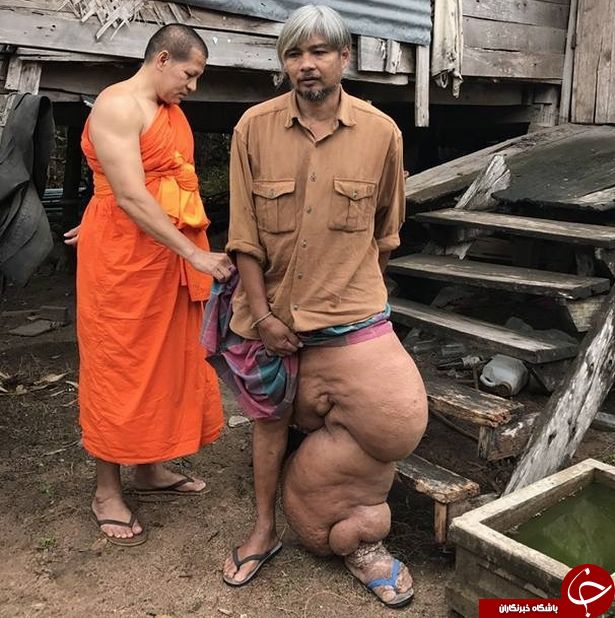 این مرد که به مدت 10 سال تلاش کرد با این وضعیت راه برود به تازگی دیگر قادر به حرکت نیست. تصاویری که از " بونتینگ نامفت" مرد 42 ساله اهل تایلند منتشر شده است رشد عجیب یکی از پاهای وی را نشان می دهد. وی که به مدت ده سال تلاش کرده تا با همین وضعیت راه برود به تازگی به علت تشدید روند رشد پایش و درد شدید دیگر قادر به راه رفتن نیست. این وضعیت که "ورم غدد لنفاوی" نامیده می شود در اثر التهاب غدد لنفاوی ایجاد می شود.