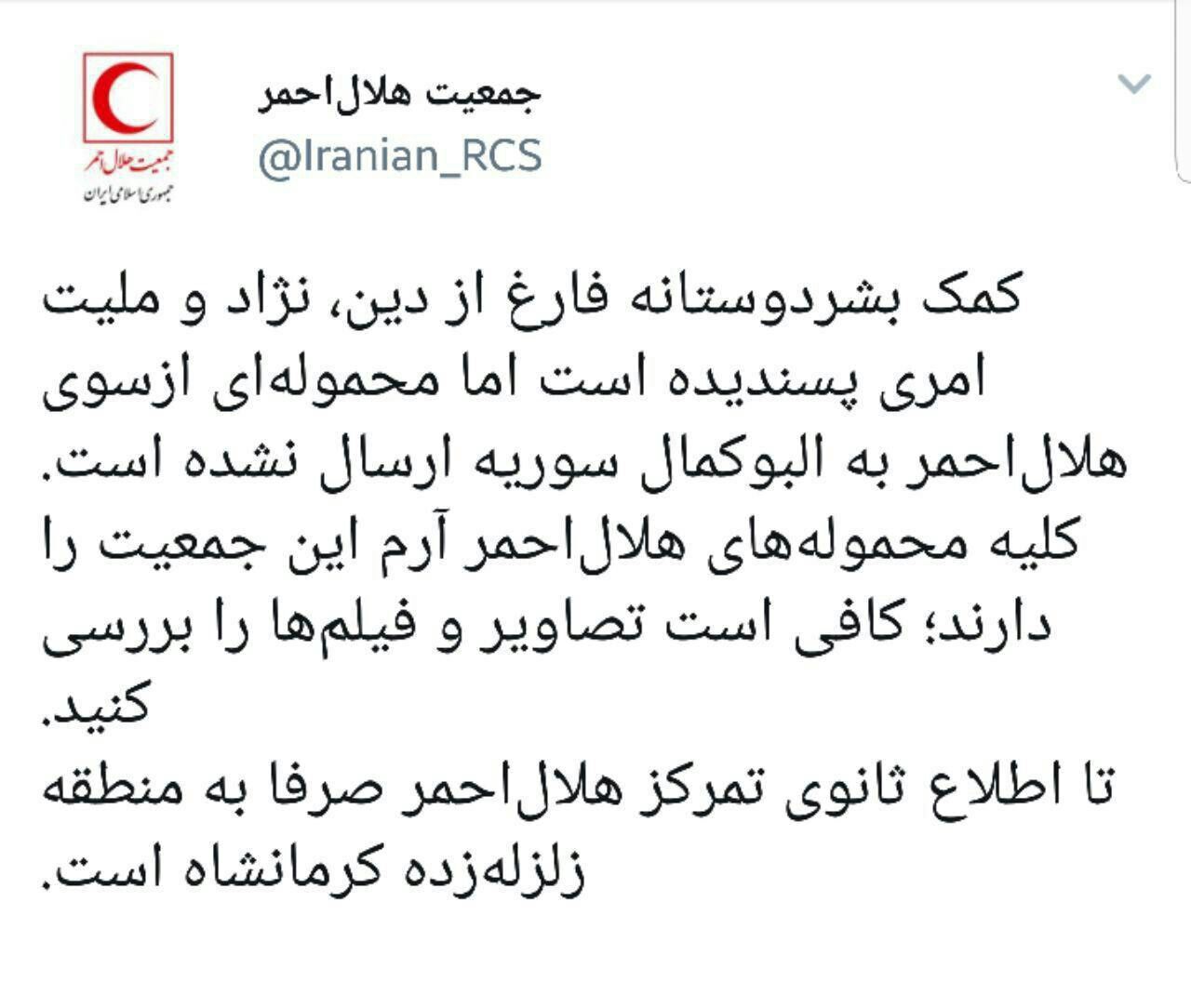 هلال احمر به خبر ارسال محموله امدادی به سوریه واکنش نشان داد.