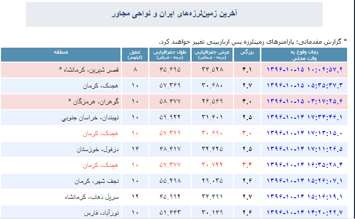 همچنین بامداد امروز نیز زلزله 4 ریشتری در گوهران هرمزگان رخ داد.