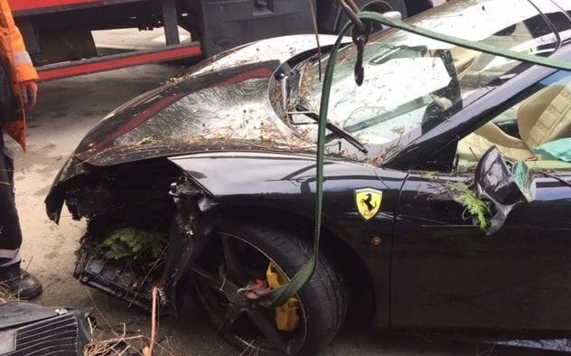 به گفته صاحبخانه آنها در زمان وقوع حادثه خواب بودند که با صدای برخورد بیدار شده و خود را به حیاط پشت خانه میرسانند و یک خودروی Ferrari 458 Spider را داخل باغچه خانهشان میبینند.