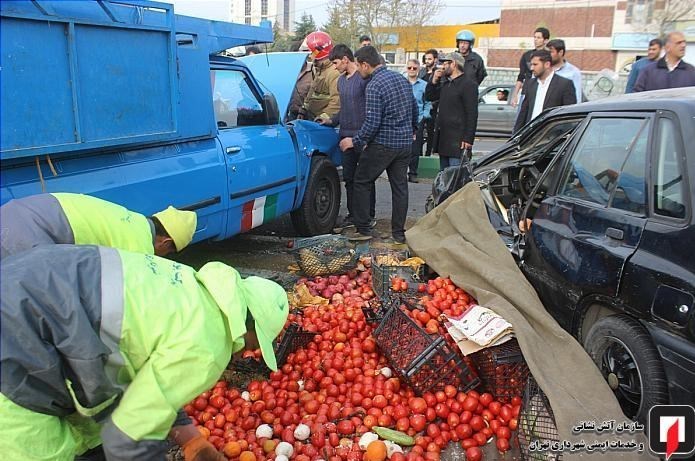 واژگون شدن نیسان حامل میوه در بزرگراه جناح + تصاویر