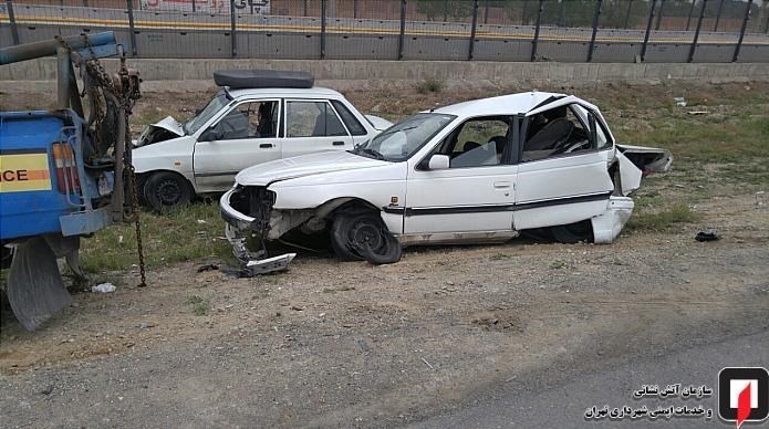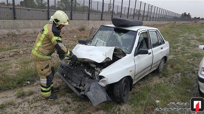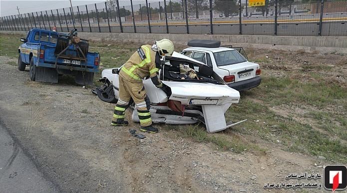 مجروح شدن 2 نفر در تصادف خونین پرشیا و پراید در اتوبان تهران ـ قم + تصاویر