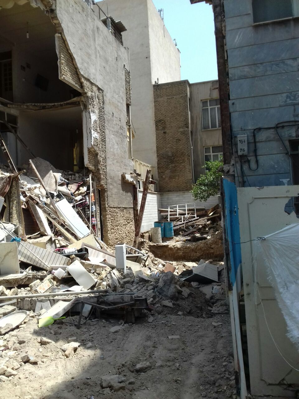 ریزش یک ساختمان در مجاورت گودبرداری در خیابان نبرد شمالی + تصاویر