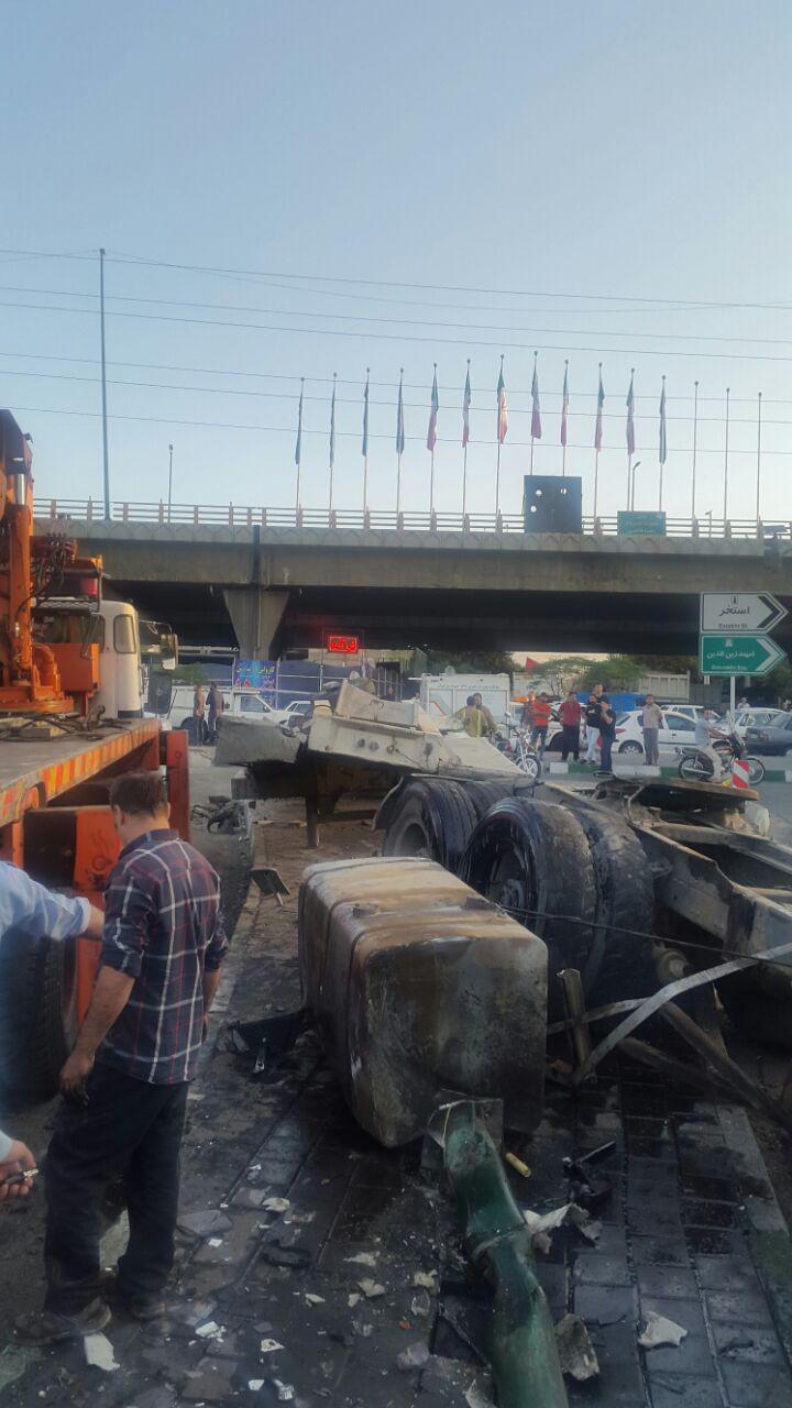 واژگونی تریلر و بیل مکانیکی در خیابان وفادار تهران
