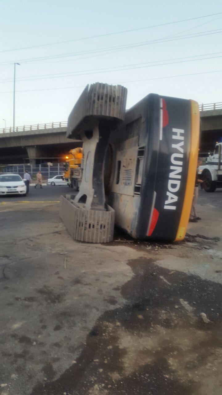 بامداد امروز در خیابان وفادار تهران یک دستگاه تریلر و بیل مکانیکی واژگون شد، این حادثه بدون مصدوم است.