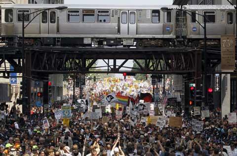 یک زوج بد شانس روز عروسی شان با روز نشست سران کشورهای عضو ناتو در شیکاگو آمریکا مقارن شد و در سیل جمعیت معترض به این نشست گرفتار شدند. به گزارش ایران ناز هزاران نفر از مردم شیکاگو در اعتراض به این نشست و عملکرد ناتو به خیابانها ریخته بودند و این درحالی بود که یک زوج جوان همزمان با تظاهرات آنان در حال برگزاری مراسم عروسی خود بودند.