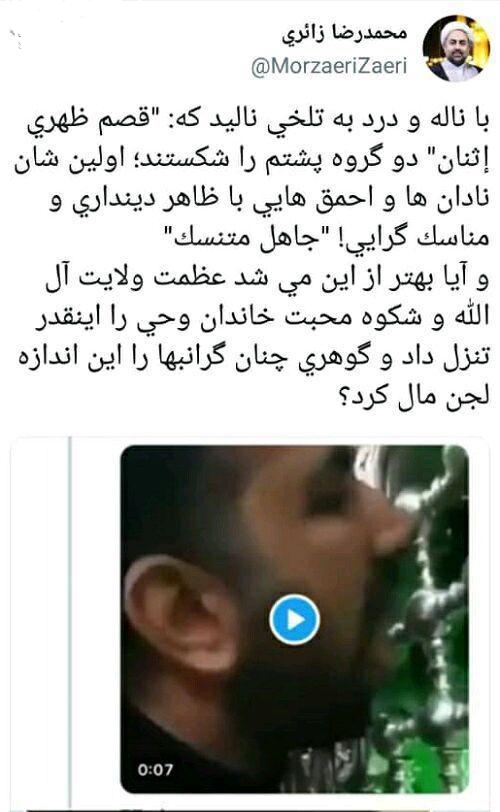 محمدرضا زائری، روحانی و مدرس دانشگاه به عمل لیسیدن حرم واکنش نشان داد.