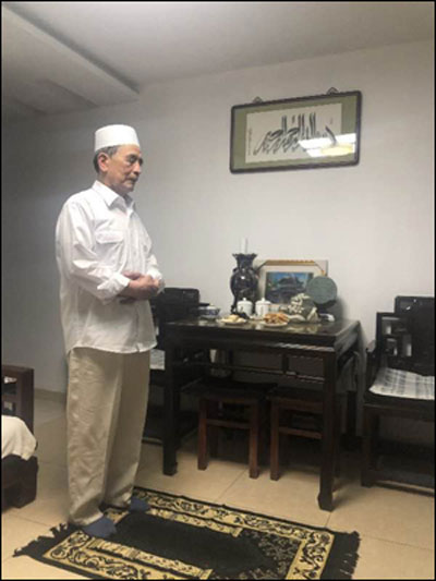 (یکی از مسلمانان شهر پکن در ماه رمضان در خانه خود نماز می خواند)
