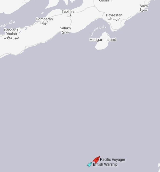 دادههای راداری نیز نشان میدهد که روز گذشته این کشتی جنگی مستقر در بحرین، هنگام گذر پسیفیک وویاجر از تنگه هرمز، سایه به سایه این نفتکش حرکت کرده است.