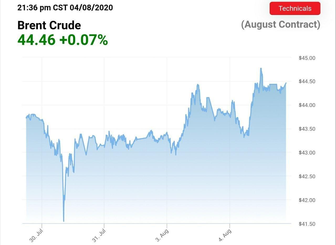 قیمت هر بشکه نفت برنت هم اکنون ۴۴ دلار و ۳۸ سنت است.