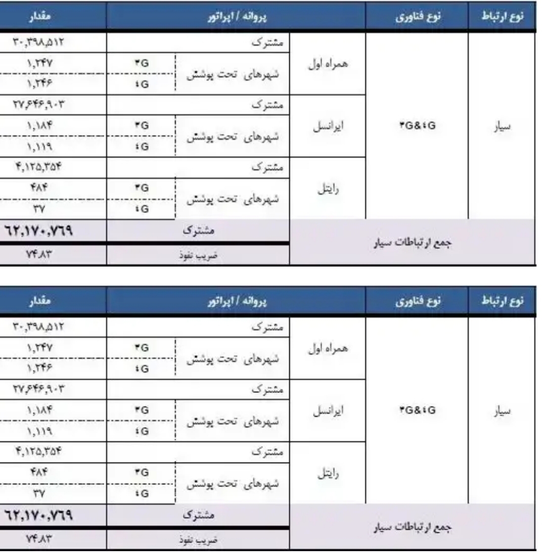 کدام اپراتور تلفن همراه بیشترین مشترکان 3G و 4G را دارد؟ / تعداد مشترکان اینترنت سیار از ۶۲ میلیون گذشت
